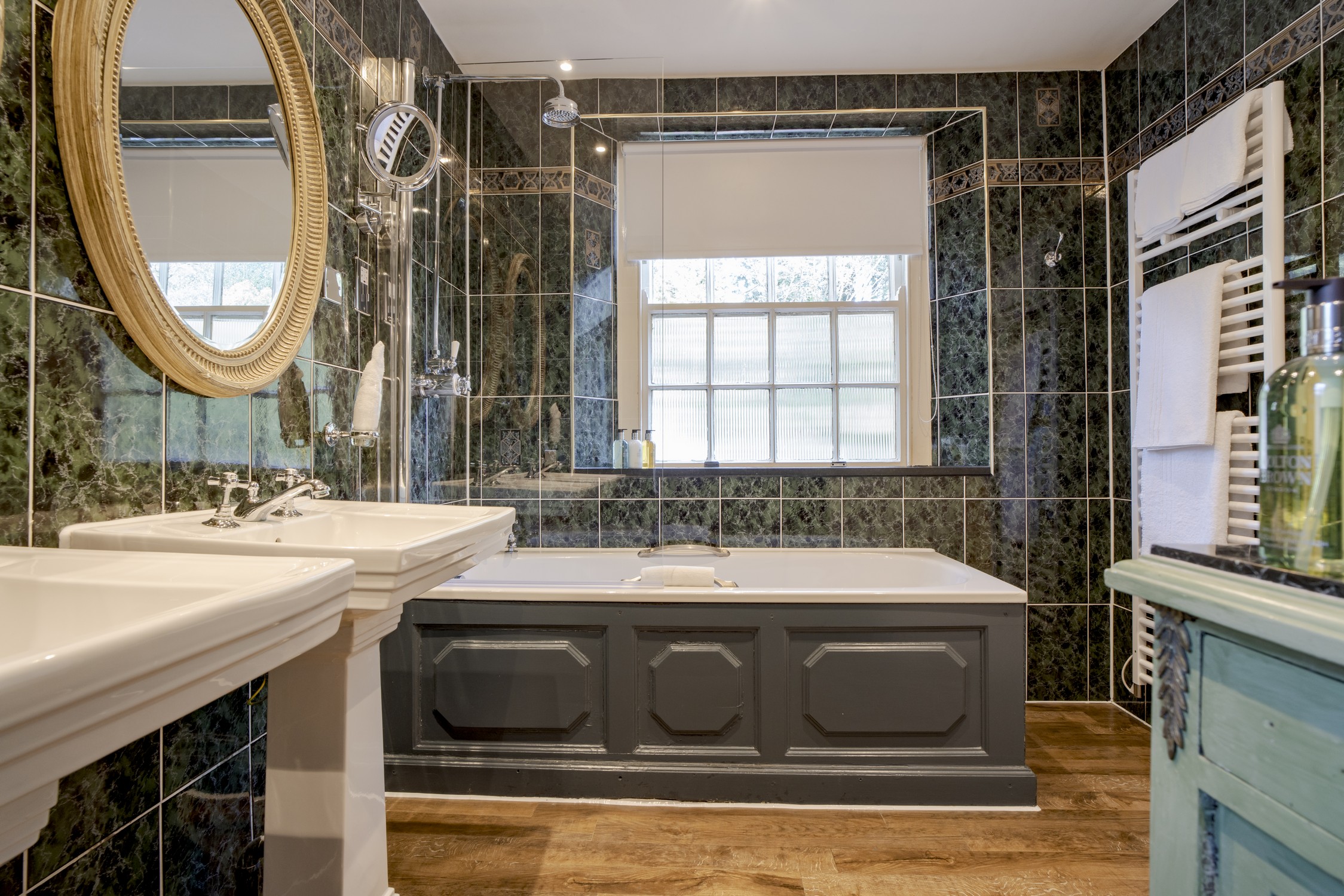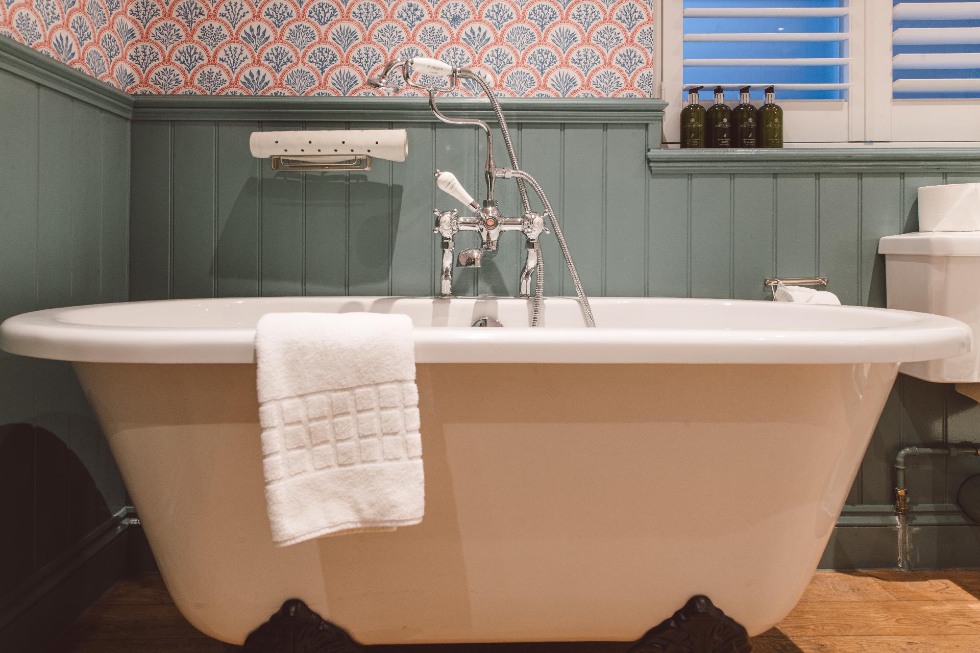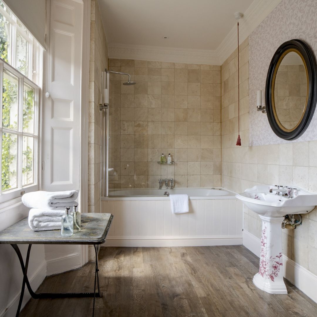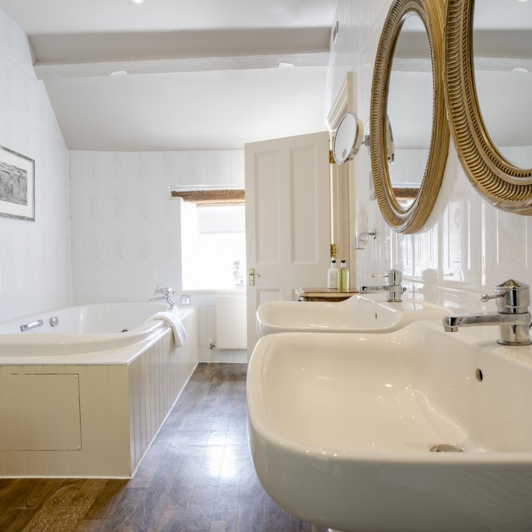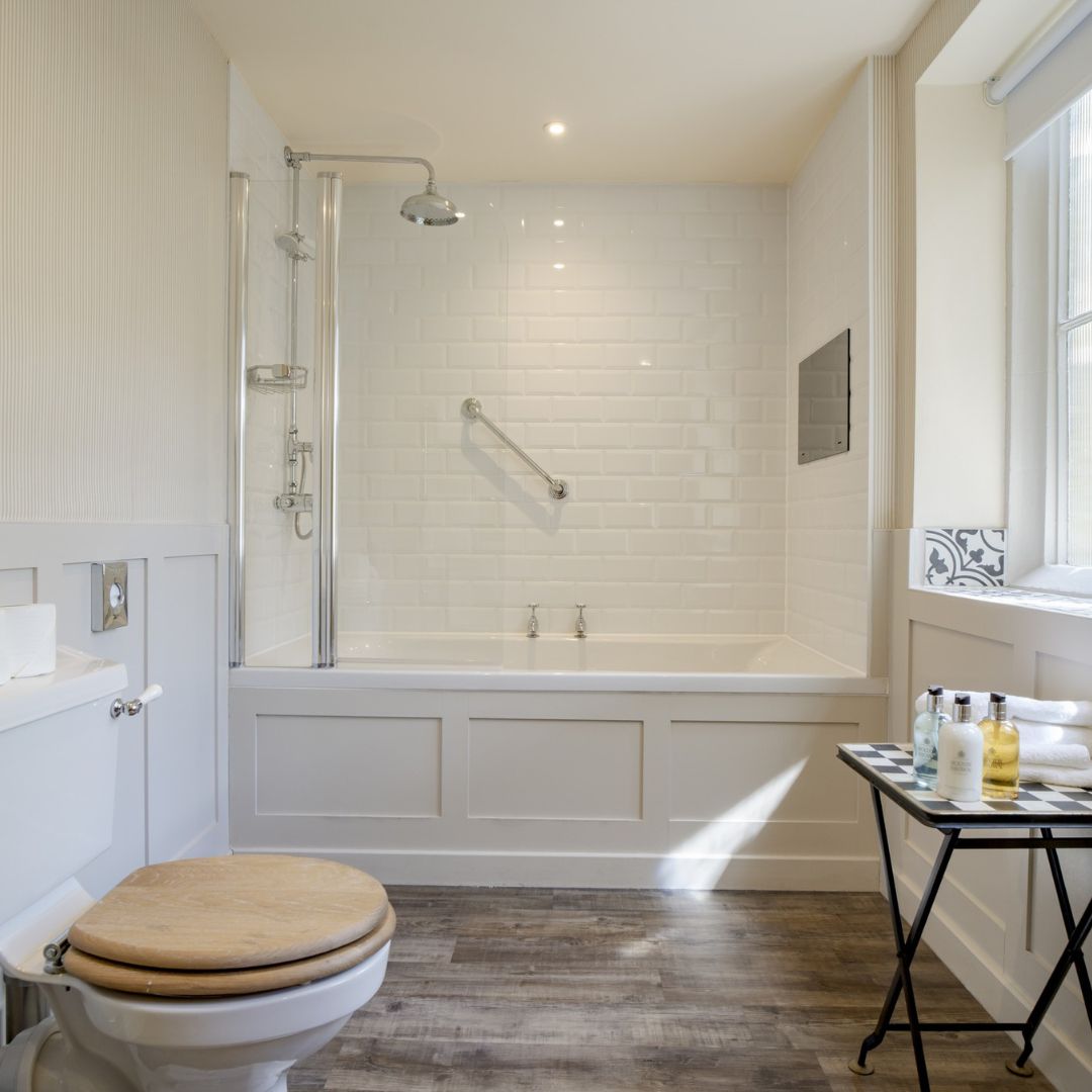 The Rookery family room consists of one double bedroom and one twin bedroom with a large interconnecting bathroom and luxurious Molton Brown toiletries. Perfect for families with older children.