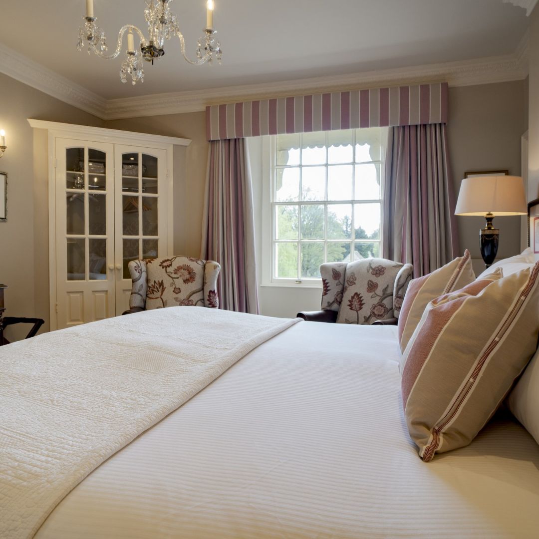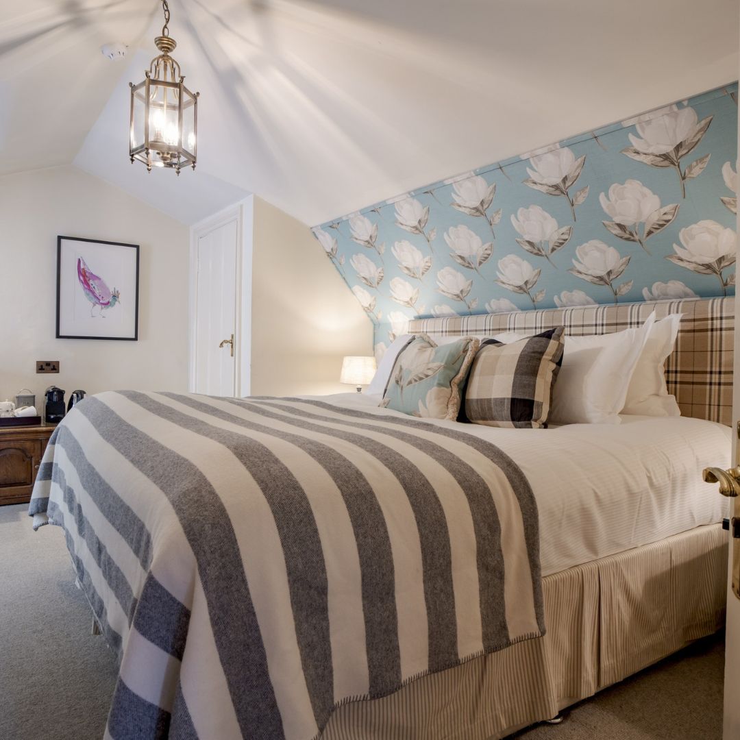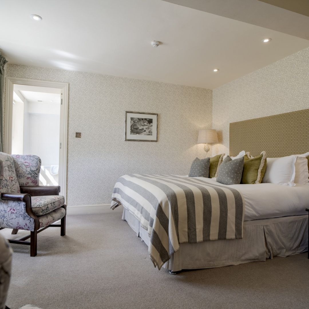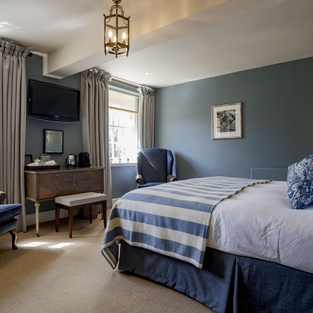 Our Deluxe Double or Twin Rooms are among our largest in the hotel with beautiful country-house style décor and luxurious en-suite bathrooms, generously stocked with Molton Brown toiletries and fluffy bathrobes. These rooms can be king size or twin-bedded depending on your preference and offer picture-perfect views over the River Coln.