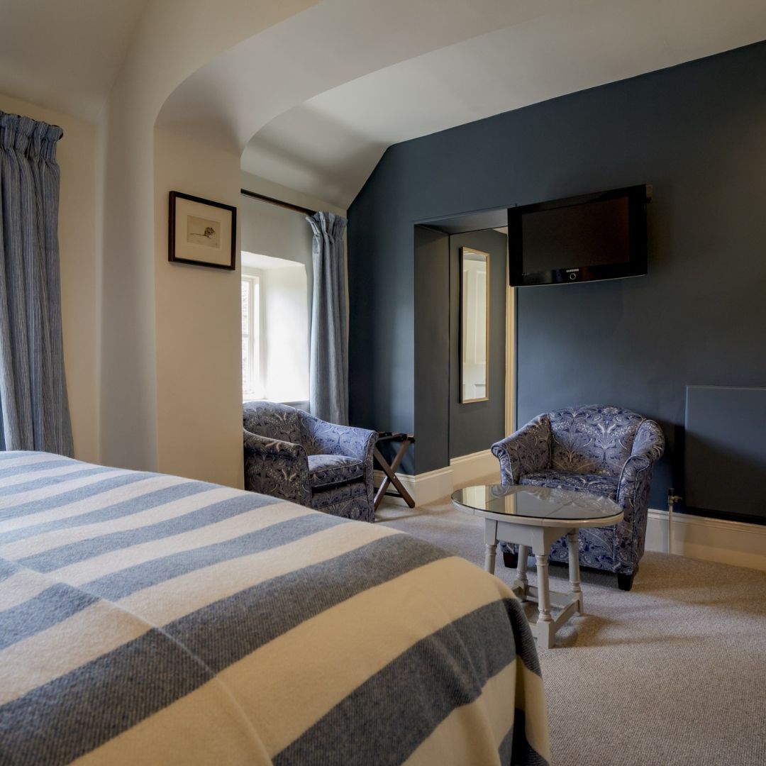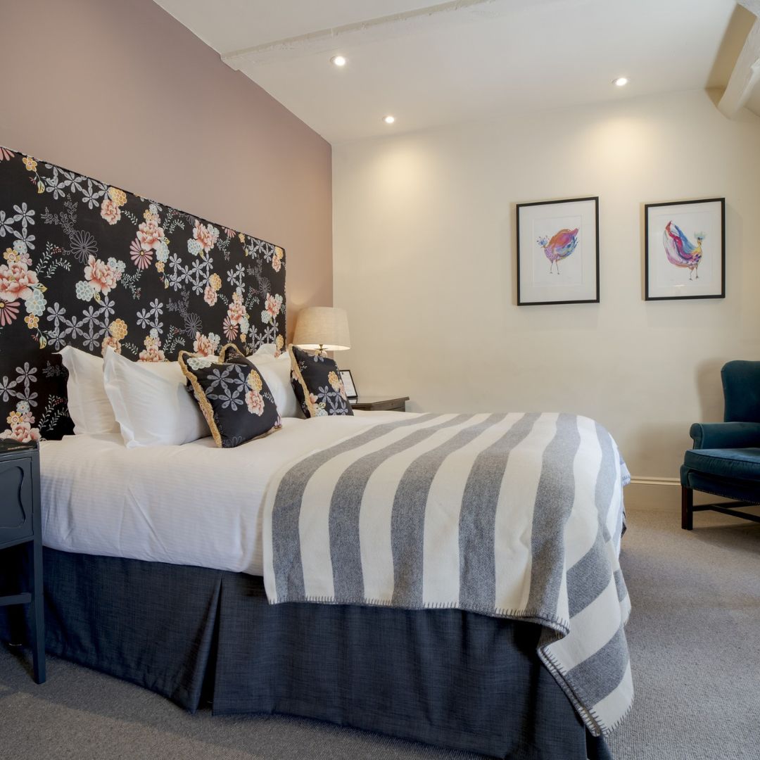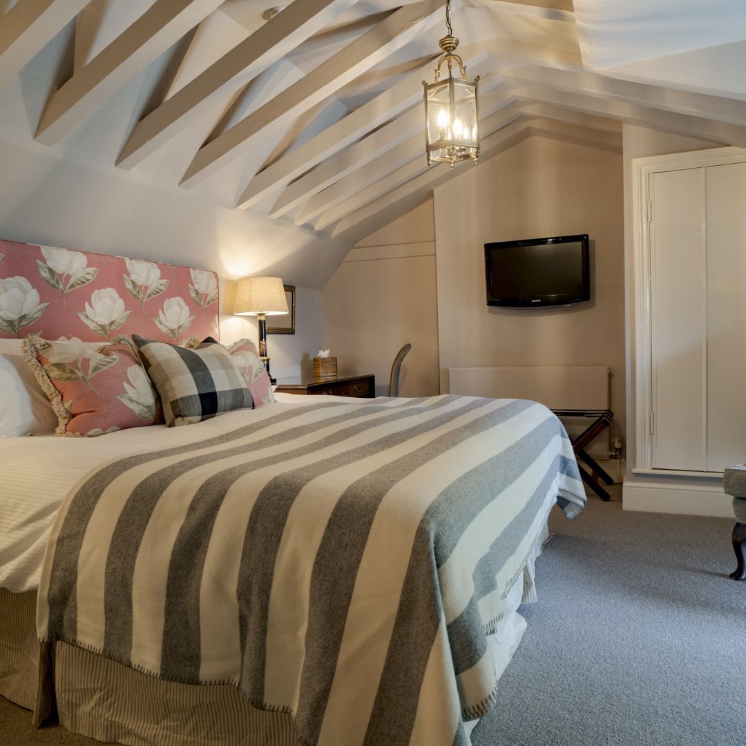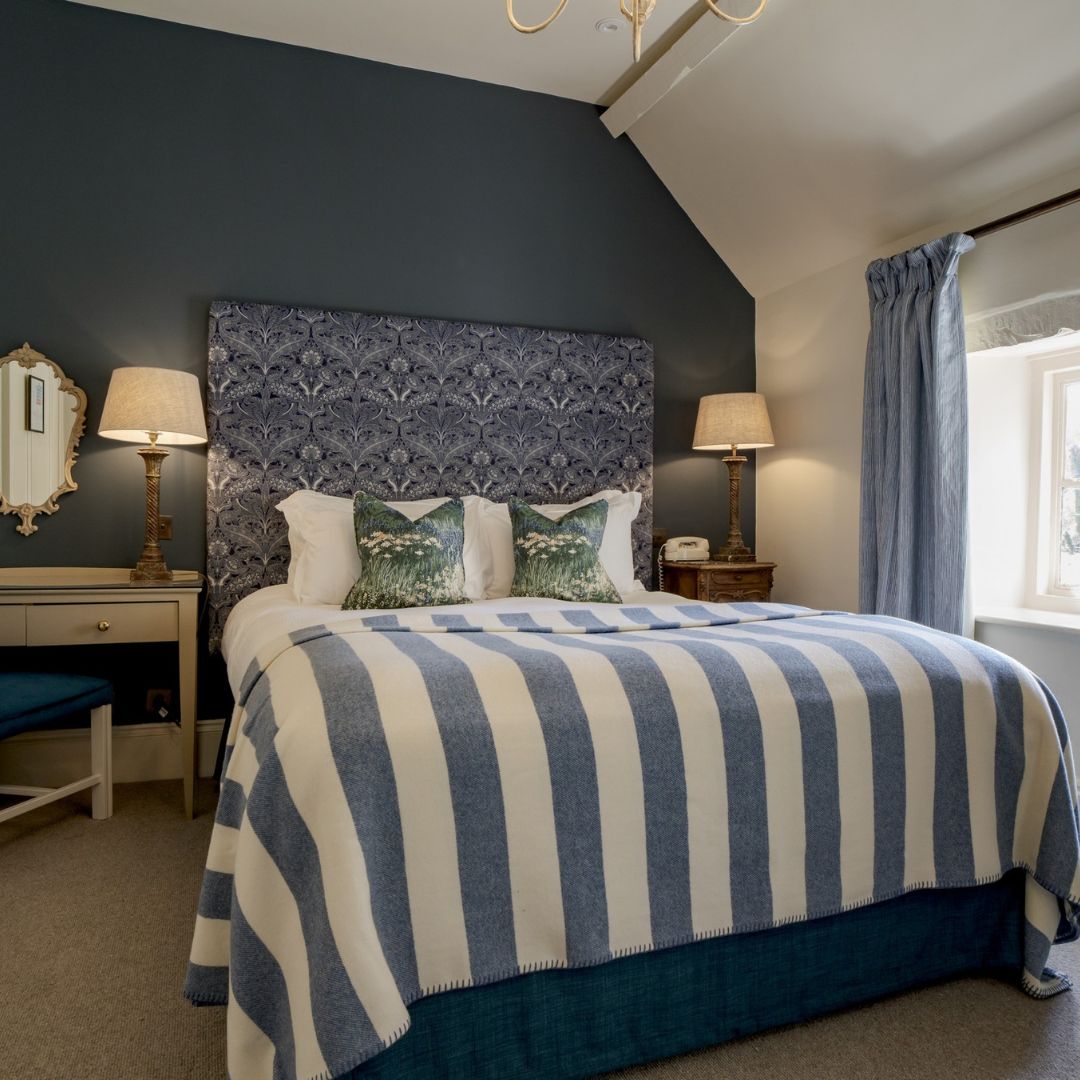 Our Deluxe Double or Twin Rooms are among our largest in the hotel with beautiful country-house style décor and luxurious en-suite bathrooms, generously stocked with Molton Brown toiletries and fluffy bathrobes. These rooms can be king size or twin-bedded depending on your preference and offer picture-perfect views over the River Coln.