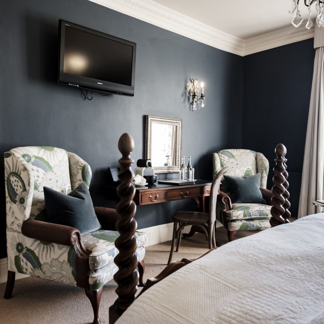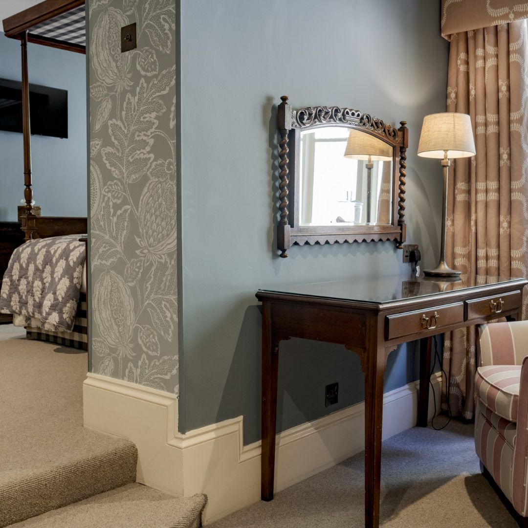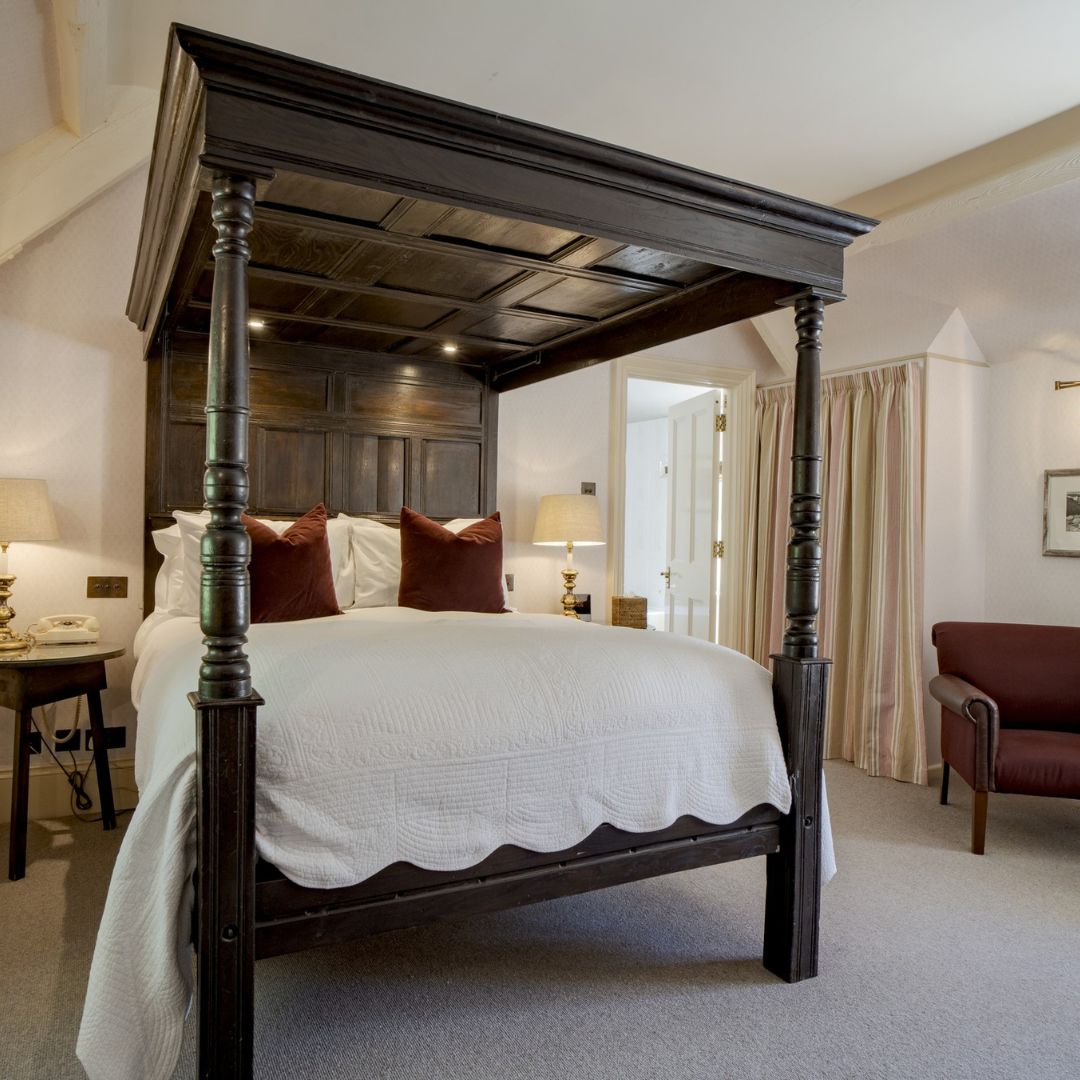 Our Deluxe Four Poster Room is among our largest in the hotel with beautiful country-house style décor and a luxurious en-suite bathroom, generously stocked with Molton Brown toiletries and fluffy bathrobes.