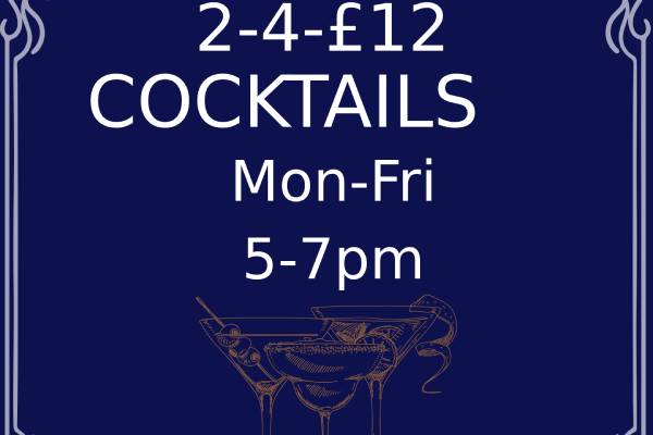 Mix and Match and enjoy all of your Favourite Tipples! 2 for £12 Cocktail Monay - Friday 5-7pm
