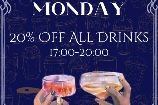 Get rid of those Monday blues with 20% off all your favourite refreshments! Available 5-8pm