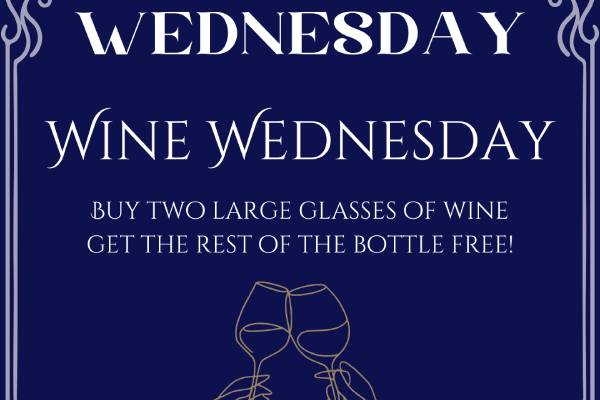 Buy 2 large glasses of any house wine, and get the rest of the bottle free! Available all day.