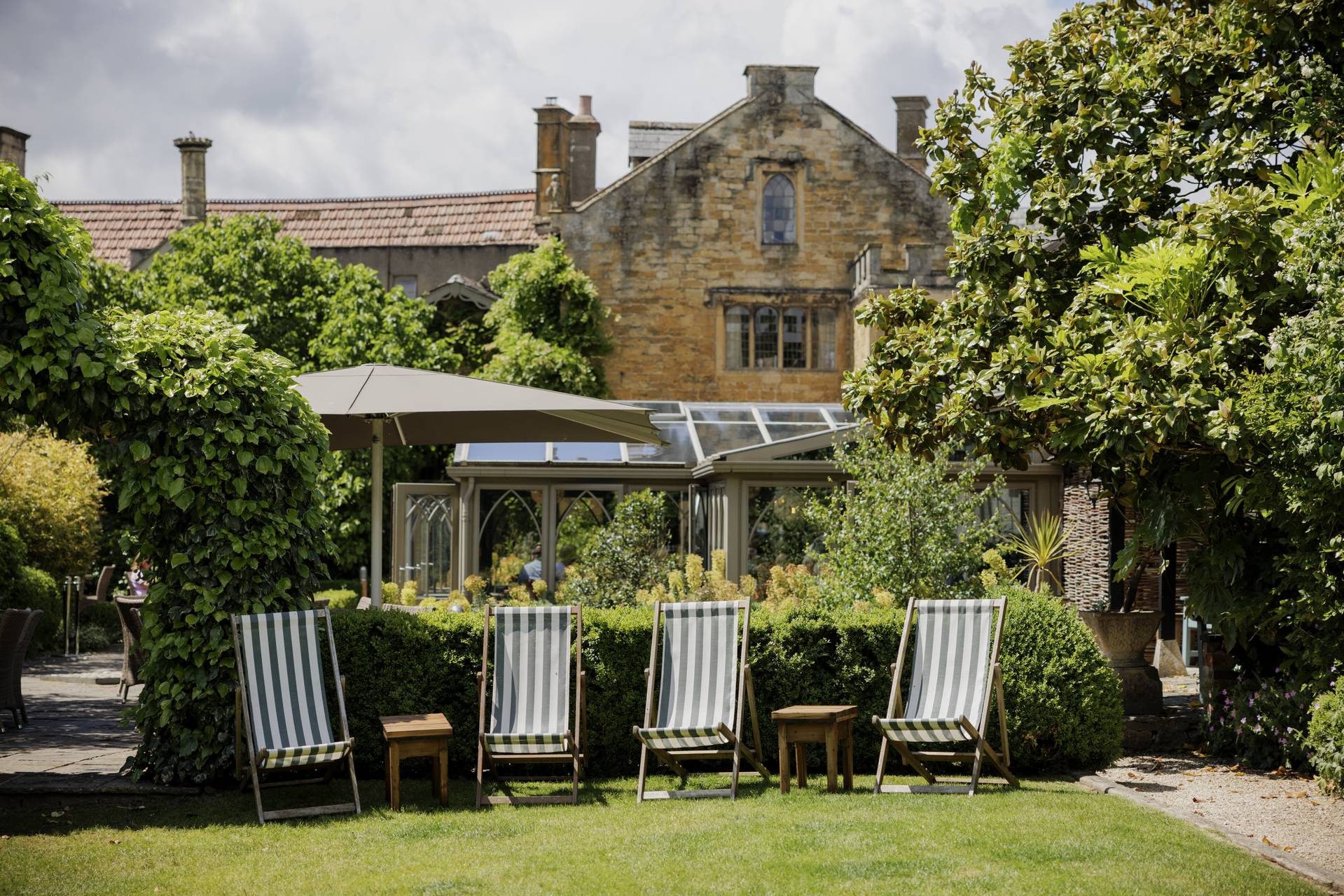 Our brasserie is the perfect spot for a relaxed bite any day of the week. Seasonal menus are served in surroundings full of charm – think exposed fireplaces, secluded alcoves with garden views and cushioned wicker chairs for comfort. The light-filled conservatory adds a touch of sophistication to the informal atmosphere, while on warm summer evenings, the courtyard patio offers a unique alfresco dining experience amidst the beauty of our English country garden.