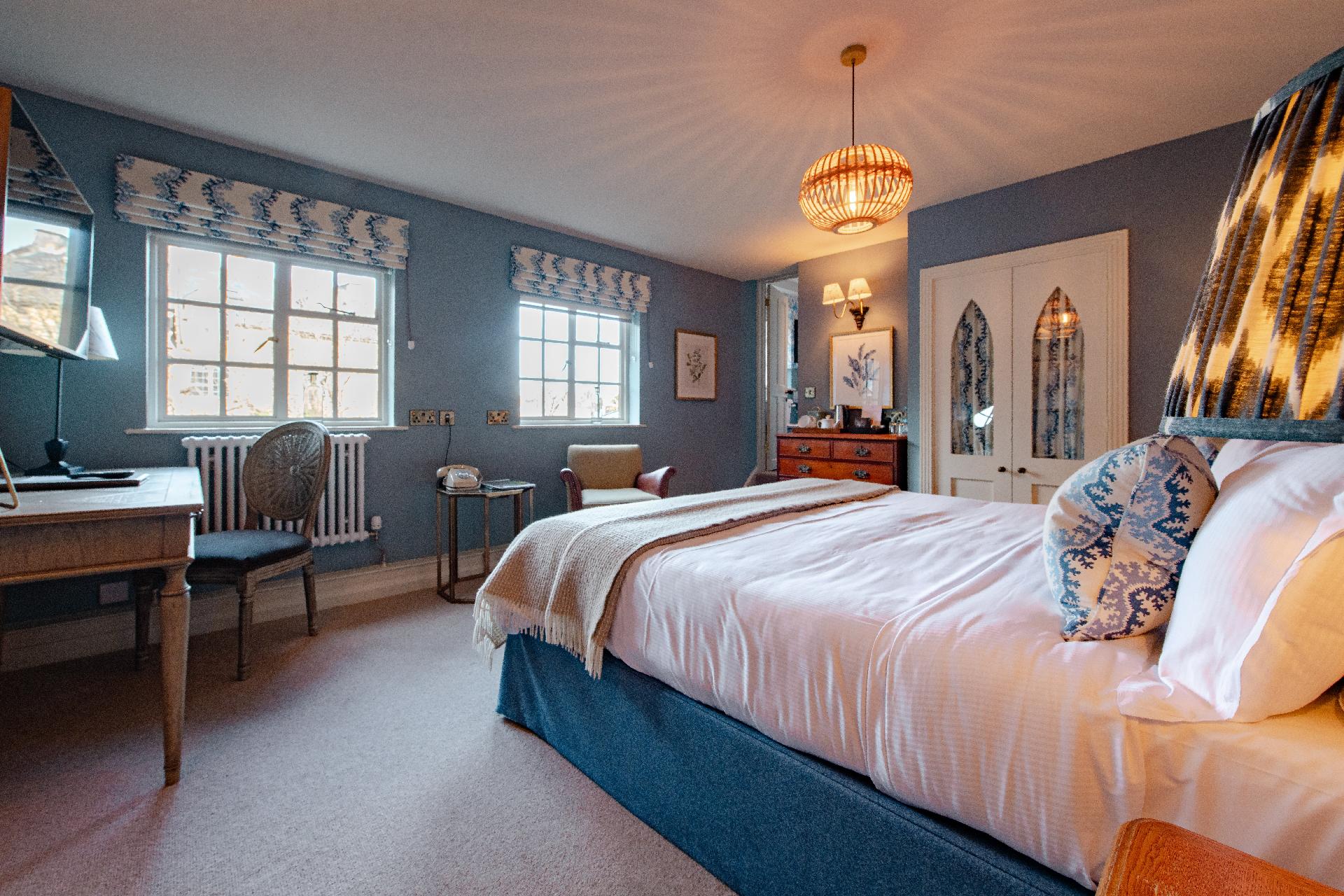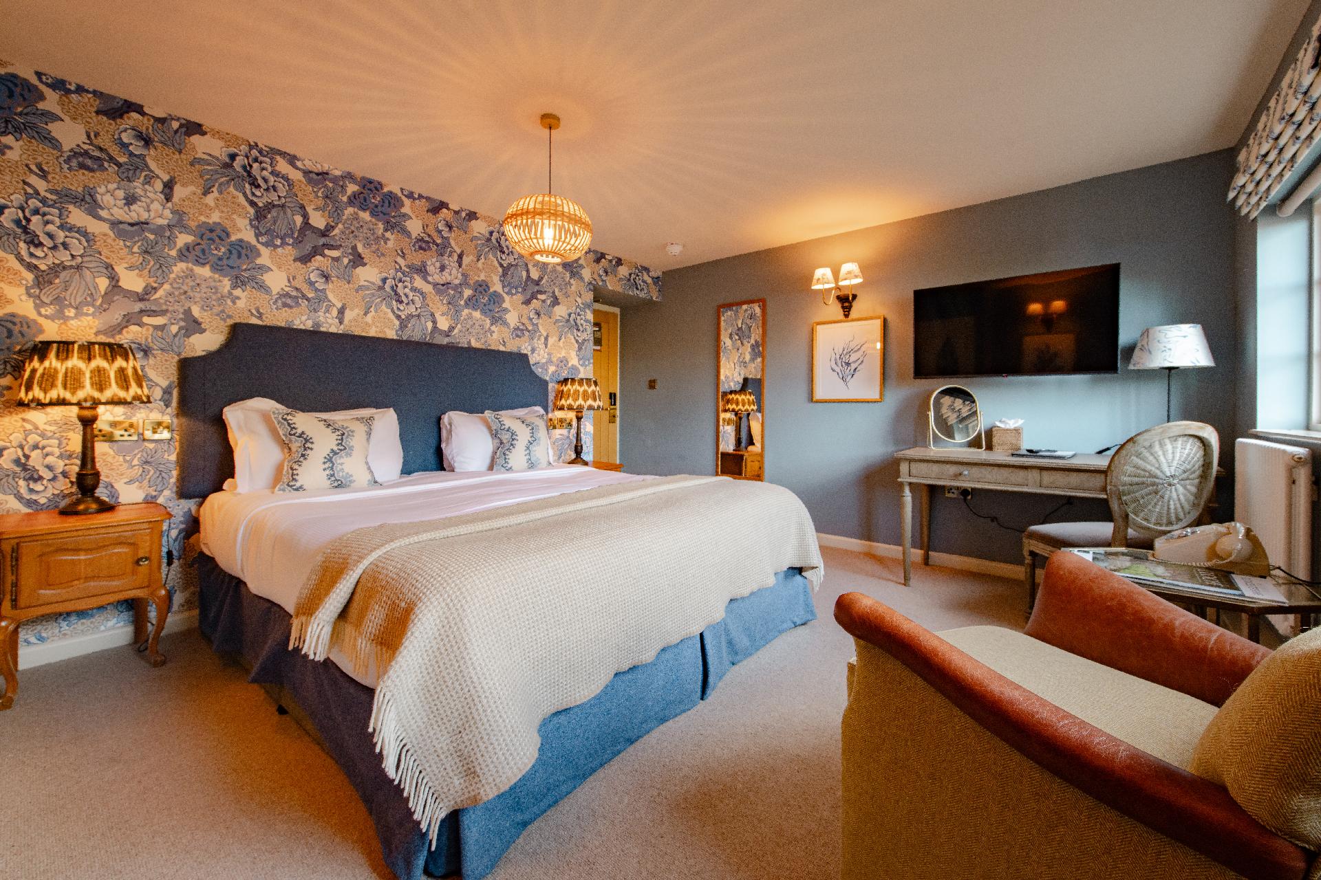 Our Deluxe Double or Twin bedrooms are stylish and full of character, with plenty of space to relax. Each features a statement bed, charming original details and a luxurious en-suite with Molton Brown toiletries and cosy bathrobes – with some boasting a free-standing bathtub and TV.