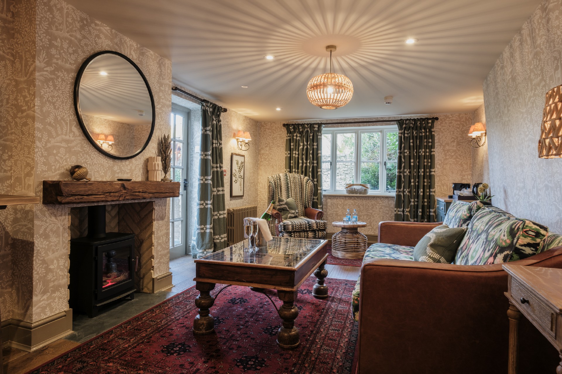 Tucked away at the end of our landscaped garden, Apple Cottage is a private Cotswold-stone retreat with its own terrace, garden and hot tub. Inside, a cosy sitting room and lounge lead outdoors, while upstairs a spacious bedroom with super-king bed is complemented by a bathroom featuring a freestanding bath and a double walk-in shower.