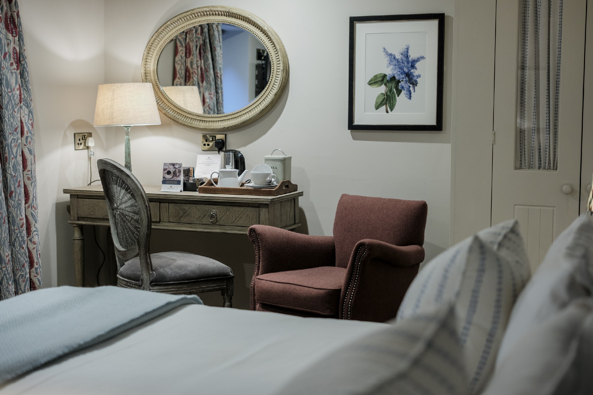 Our Cosy Double bedrooms are small but perfectly formed. Each first-floor room is individually designed and thoughtfully stocked with tea, coffee, and indulgent Molton Brown toiletries.